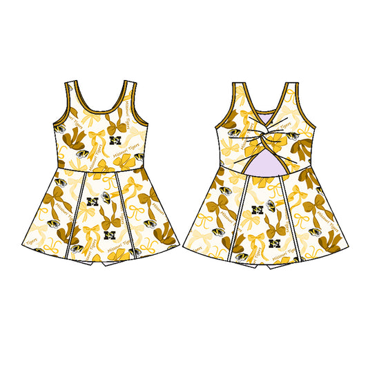 (Custom Design Preorder MOQ 5 Each Color) Team's MISSOURI TIGERS Bows Print Girls Summer Clothes Sisters Matching Wear