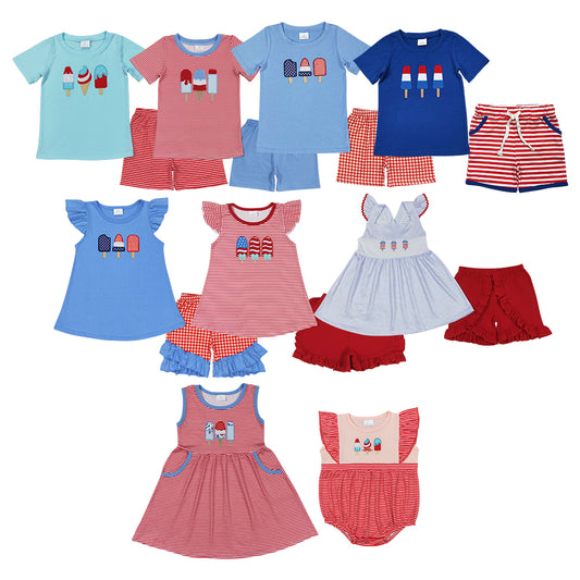 9 Items Popsicle Embroidery Sibling 4th of July Matching Clothes
