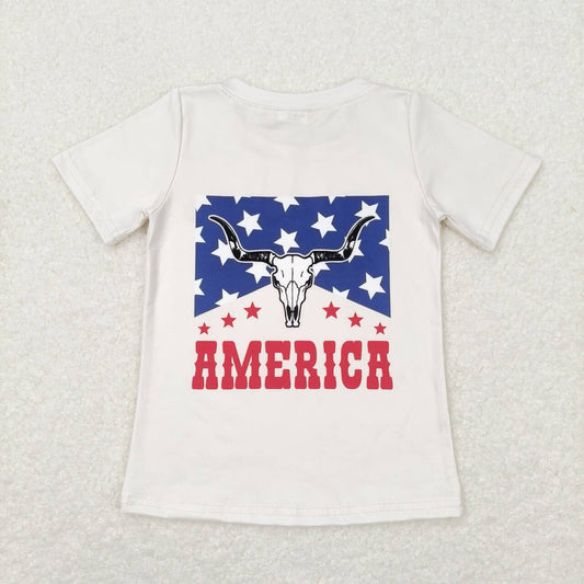 GT0465 Cow Skull America Print Kids 4th of July Tee Shirts Top