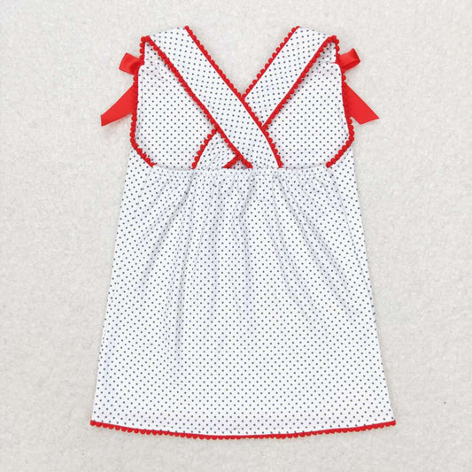 GT0599 Flags Embroidery Dots Print Girls 4thof July Tee Shirts Top