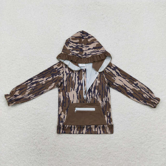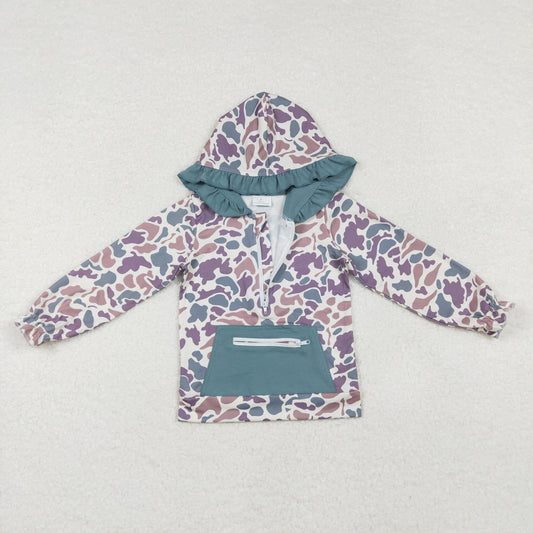 GT0628 Camo Print Pocket Girls Hoodie Zipper Tee Shirts Top