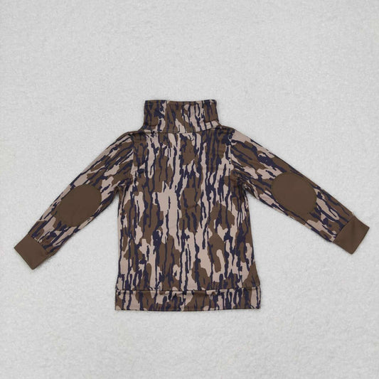 BT0810 Brown Camo Print Boys Fall Pullover Zipper Tee Shirts Top
