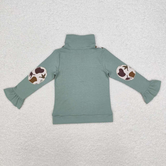 GT0669 Camo Dog Duck Print Girls Fall Pullover Zipper Tee Shirts Top