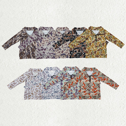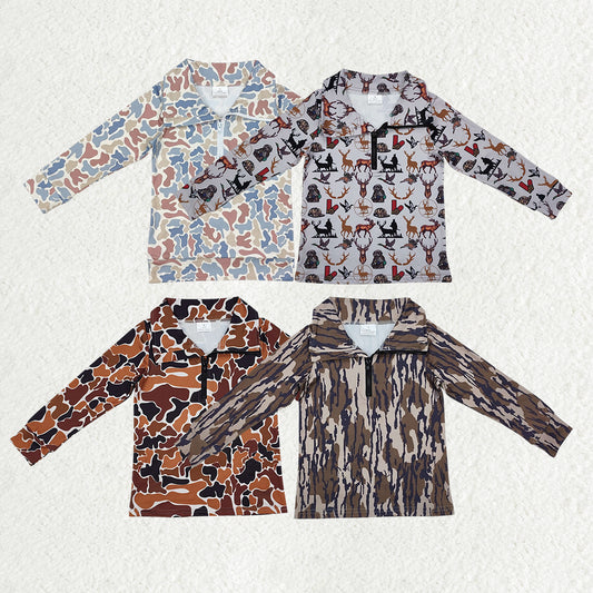 Camo Print Boys Hunting Zipper Pullover Tee Shirts Top Brothers Wear