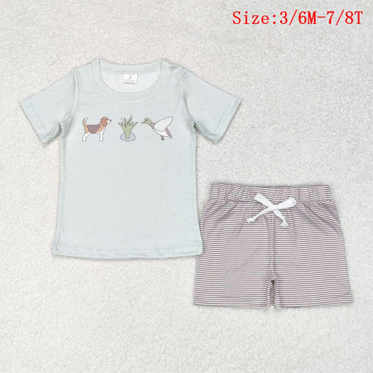 SR3091 Dog Duck Hunting Print Baby Boys Summer Bubble Romper