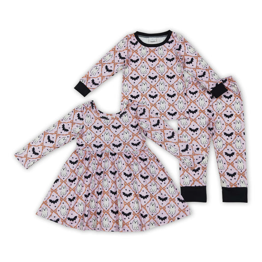 Bat Leopard Print Girls Halloween Matching Clothes Sisters Wear
