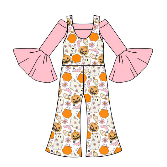 SR0410 Pink flowers pumpkin ghost girls Halloween jumpsuit