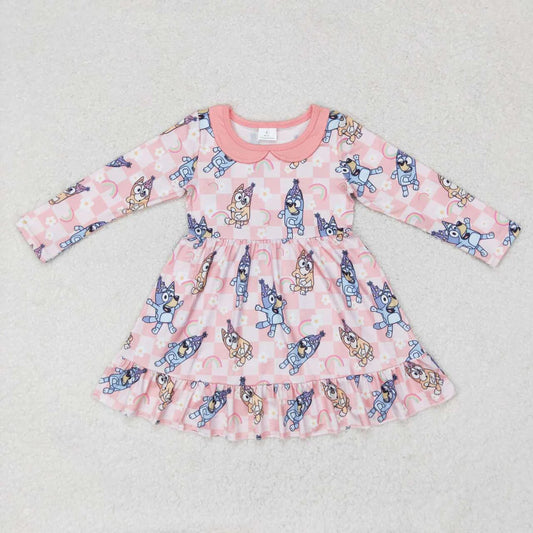 Cartoon Dog Rainbow Pink Plaid Print Girls Fall Birthday Clothes Sisters Wear