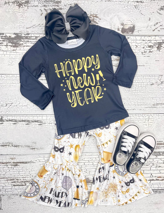 GLP0817 Happy New Year bell pants girls clothes set