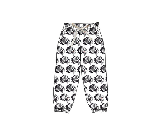 (Custom Design Preorder MOQ 5 Each Design) Team's Shawnee Indians Black Print Joggers Bottom Pants Mom and Me Matching Clothes