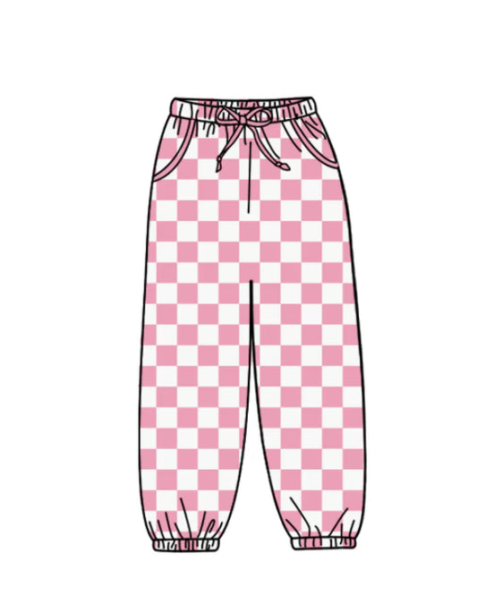 (Custom Design Preorder MOQ 5 Each Item) 6 Colors Plaid Print Kids Bottom Joggers Pockets Pants
