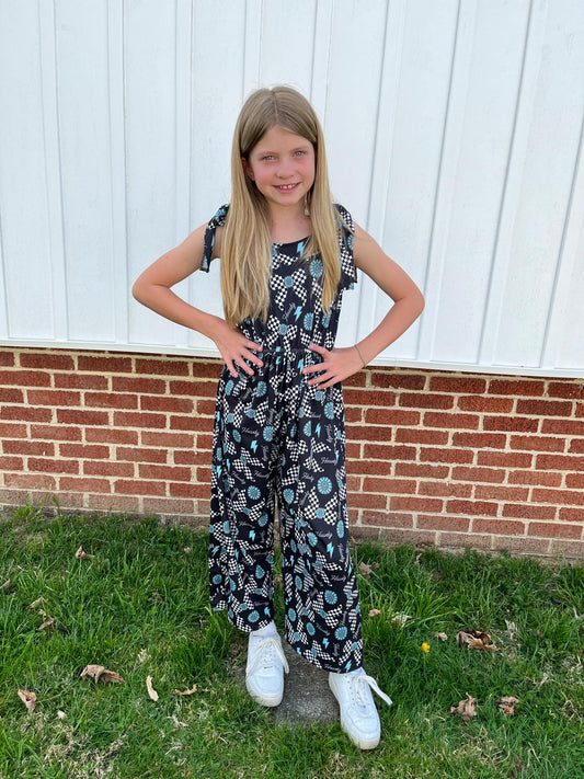 SR2524 Black Bows Print Girls Summer Strap Jumpsuits