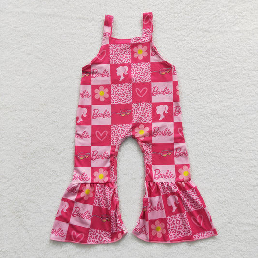 SR0425 Spaghetti strap pink BA western design baby girls bell bottom jumpsuit
