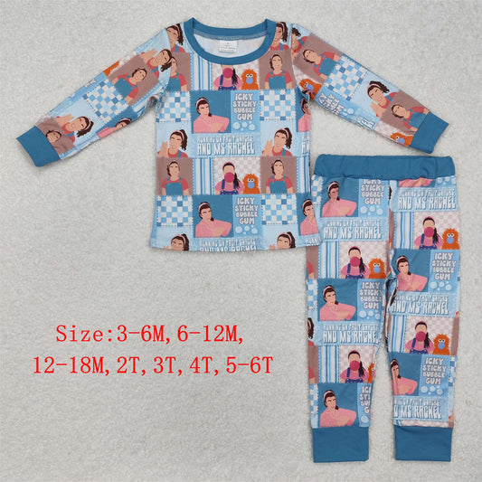 BLP1059 Cartoon Teacher Ms.Rache* Blue Print Boys Pajamas Clothes Set