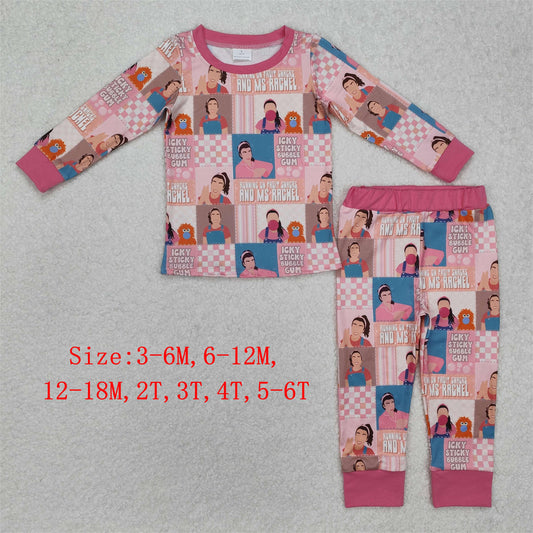GLP2281 Cartoon Teacher Ms.Rache* Pink Print Girls Pajamas Clothes Set