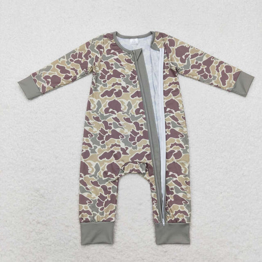 LR1452 Camo Print Baby Fall Bamboo Sleeper Zipper Romper