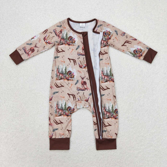 LR1014 Deer Turkey Hunting Print Baby Fall Bamboo Sleeper Zipper Romper