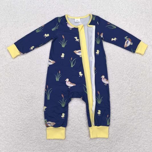 SR1897 Duck Navy Print Baby Boys Fall Bamboo Sleeper Zipper Romper