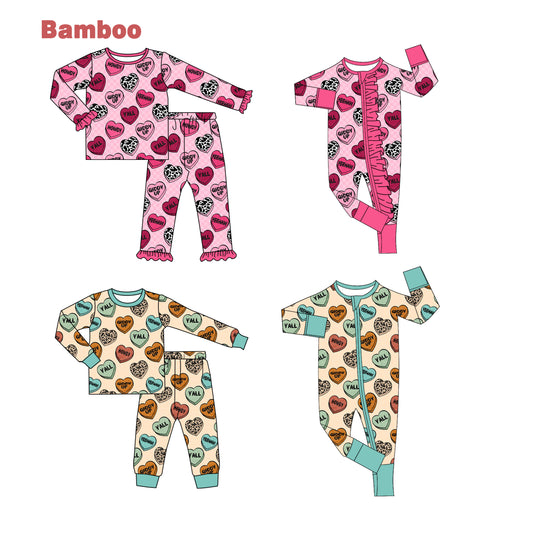 (Custom Design Preorder MOQ 20 Each Design) Heart Print Kids Valentine's Day Pajamas Matching Bamboo Clothes Sibling Wear