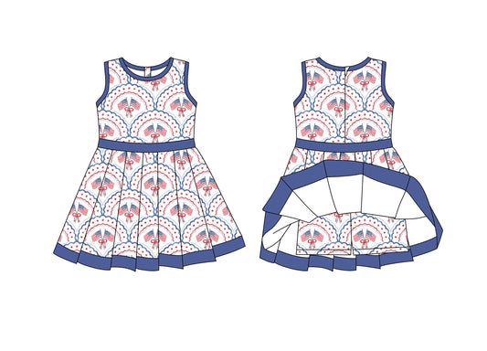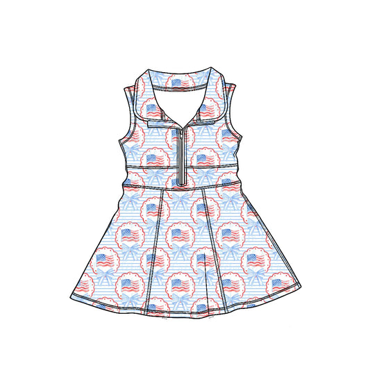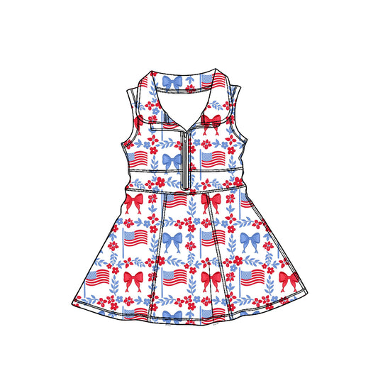 (Custom Design Preorder MOQ 5) Flag Blue Bows Print Zipper Shorts Skirts Girls 4th of July Yoga Dress Sisters Wear