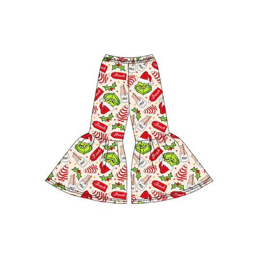 (Custom Design Preorder MOQ 5) Red Top Green Frog Milk Holly Cake Bell Pants Girls Christmas Clothes Set