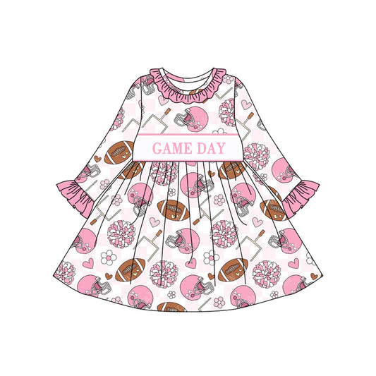 (Custom Design Preorder MOQ 5 Each Design) Game Day Cheer Pink Print Girls Matching Clothes Sisters Wear