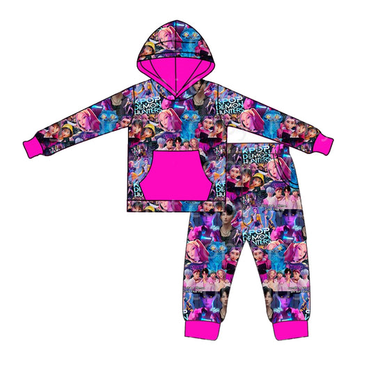 (Custom Design Preorder MOQ 5 Each Item) Cartoon KPOP Character Hot Pink Print Girls Matching Clothes