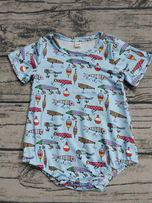 (Custom Design Preorder MOQ 5) Fishing Print Baby Boys Summer Romper
