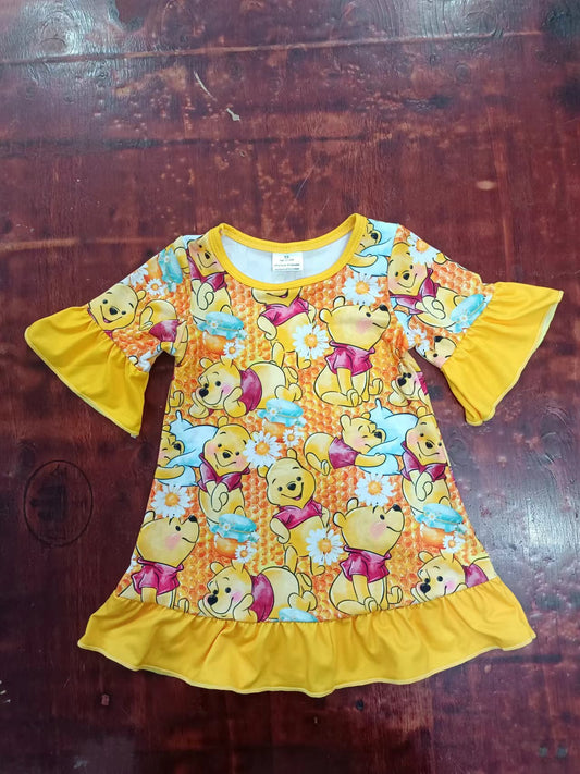(Custom Design Preorder MOQ 5) Cartoon Bear Print Girls Knee Length Summer Dress