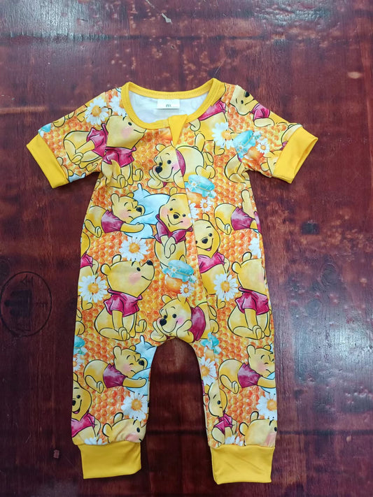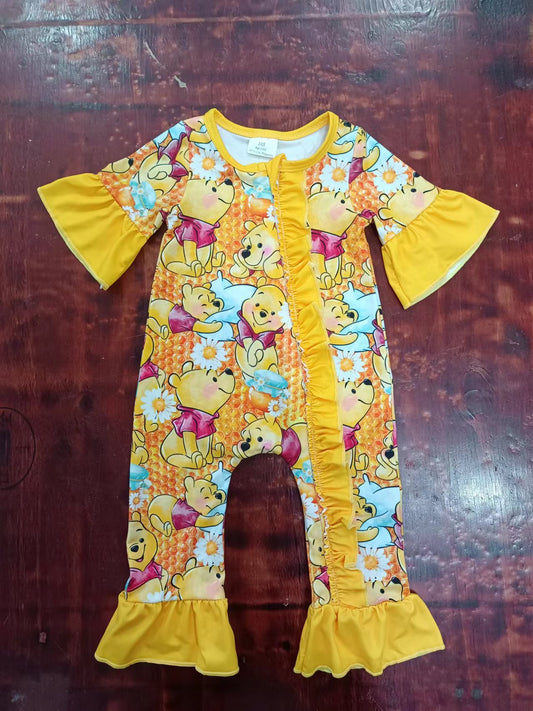 (Custom Design Preorder MOQ 5) Cartoon Bear Print Baby Girls Summer Zipper Romper