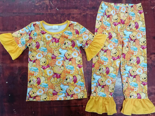 (Custom Design Preorder MOQ 5)Cartoon Bear Print Girls Pajamas Clothes Set