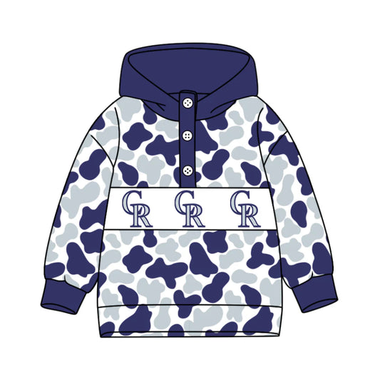 (Custom Design Preorder MOQ 5) Team's Colorado Rockies Camo Print Kids Long Sleeve Buttons Hoodie Top