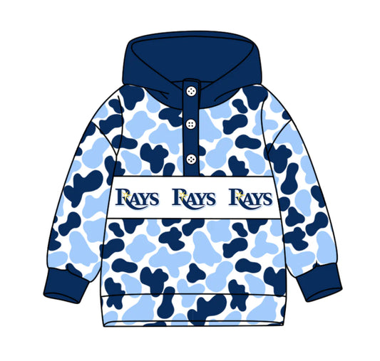(Custom Design Preorder MOQ 5) Team's Tampa Bay Rays Camo Print Kids Long Sleeve Buttons Hoodie Top