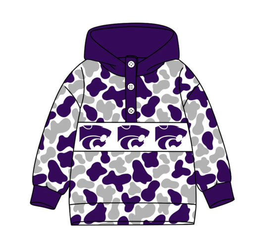 (Custom Design Preorder MOQ 5) Team's Kansas State Wildcats Camo Print Kids Long Sleeve Buttons Hoodie Top