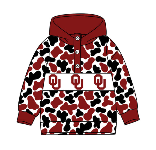 (Custom Design Preorder MOQ 5) Team's Oklahoma Camo Print Kids Long Sleeve Buttons Hoodie Top