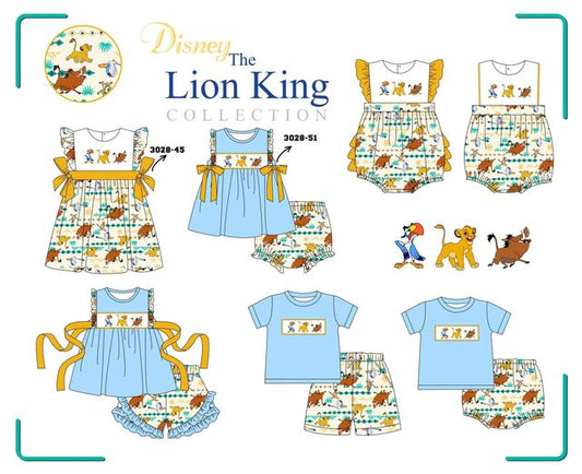 (Custom Design Preorder MOQ 5) Cartoon Lion Print Baby Boys Summer Bummie Sets