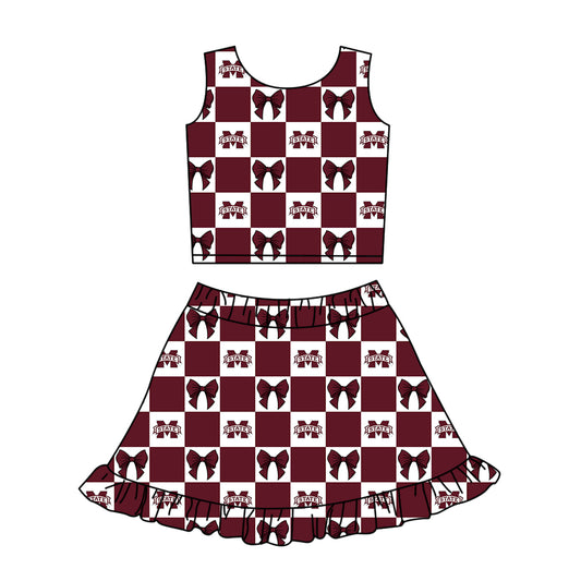 (Custom Design Preorder MOQ 5 Each Color) Team's Mississippi State Bows Plaid Print Girls Summer Clothes Sisters Matching Wear