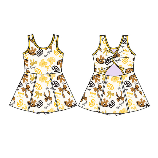 (Custom Design Preorder MOQ 5 Each Color) Team's SAN DIEGO Bows Print Girls Summer Clothes Sisters Matching Wear