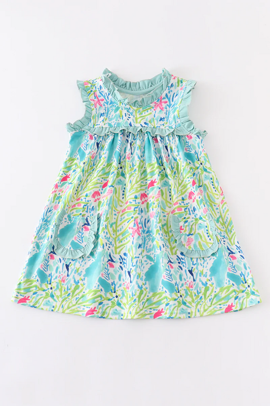 (Custom Design MOQ 5) Light green flowers girls pockets summer dress
