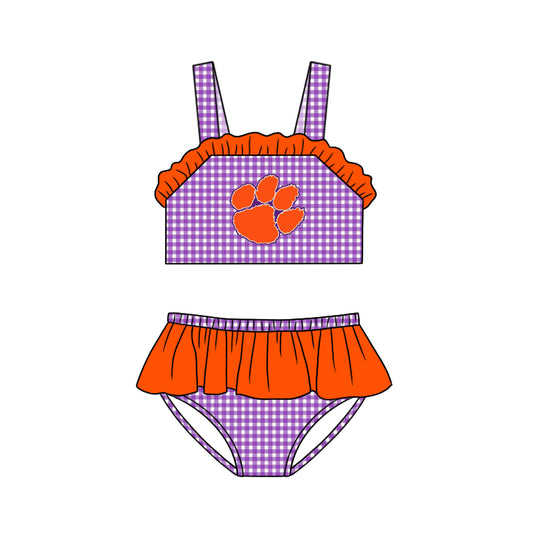 (Custom Design Preorder MOQ 5) Girls purple plaid summer 2 pcs swinsuit