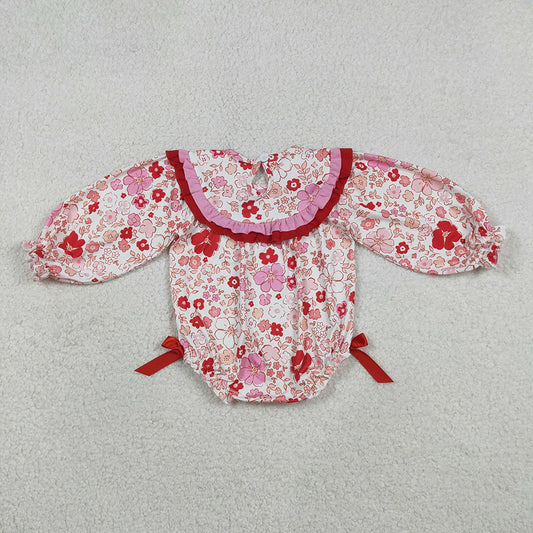 LR2938 Boots Hat Flowers Bows Embroidery Flowers Baby Girls Western Smocked Romper