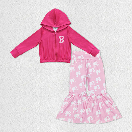 GLP1149 Pink BA Print Bell Pants Hoodie Jacket Top Girls Clothes Set