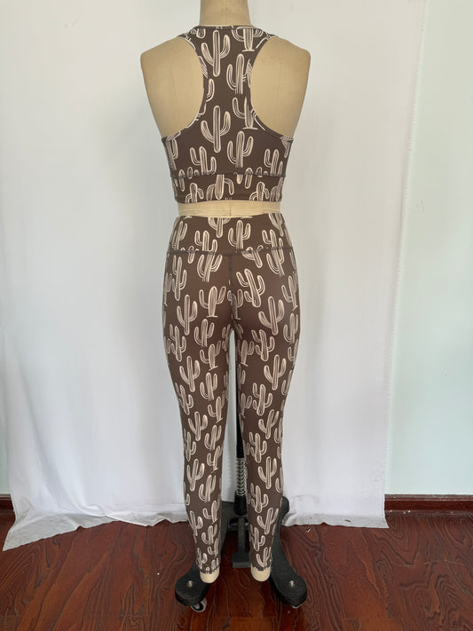 (Pre-order)GSPO1464 Adult Cactus Print Woman Yoga Clothes Set