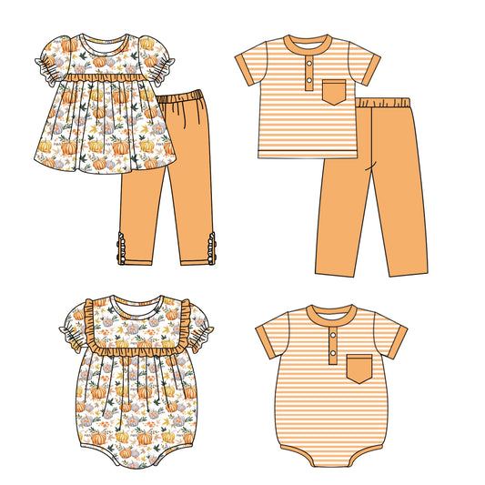 (Pre-order)SR1750 Pumpkin Print Baby Girls Fall Romper