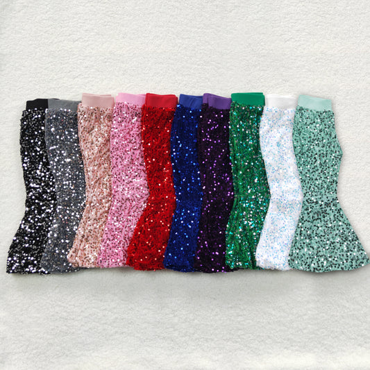 P0329 Girls Colorful Sequin Bell Bottom Pants