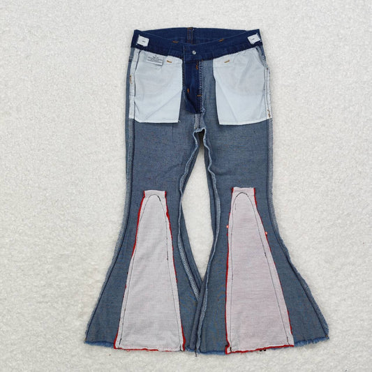 P0532 Blue Denim Red Sequin Bell Bottom Jeans Girls Christmas Pants