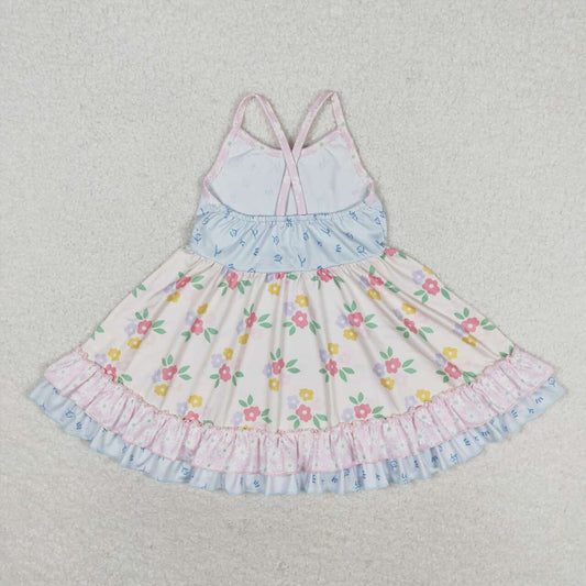 GSD0859 Flowers Print Girls Summer Knee Length Strap Dress
