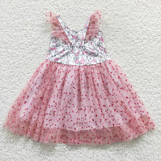 GSD0356 Orange cartoon dog tulle girls summer dress