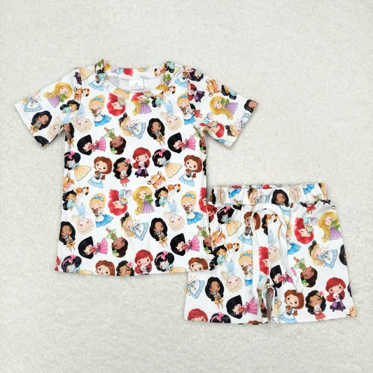 GSSO1099 Cartoon Princess Print Girls Summer Pajamas Clothes Set