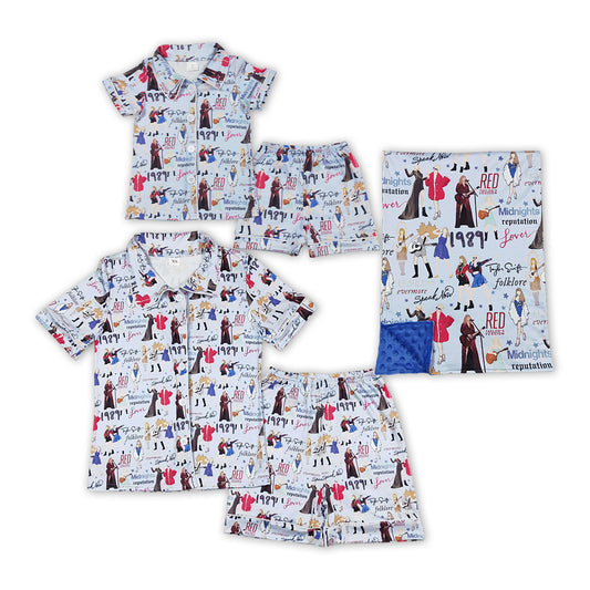 Mommy and Me Matching Clothing Blue Singer Swiftie Print Summer Pajamas Clothes Set